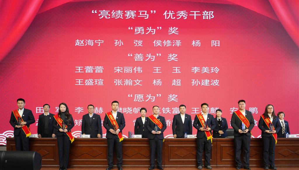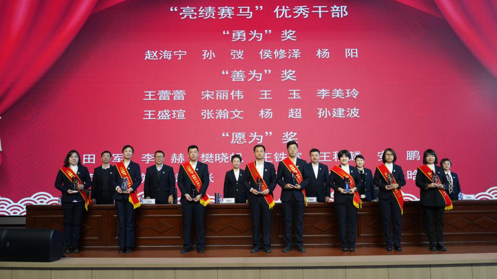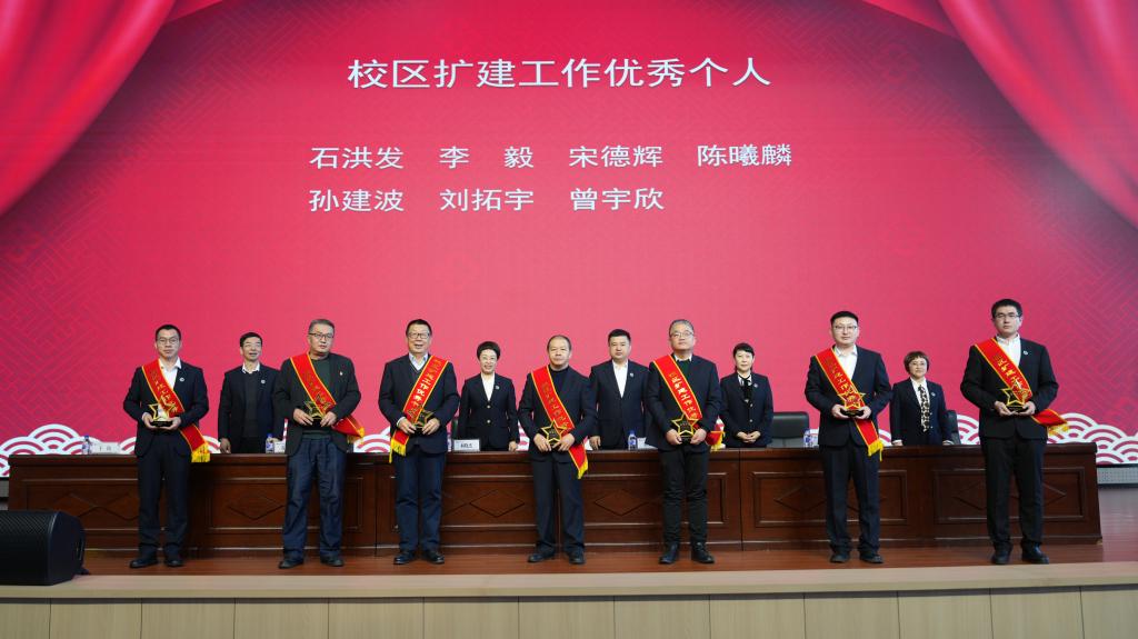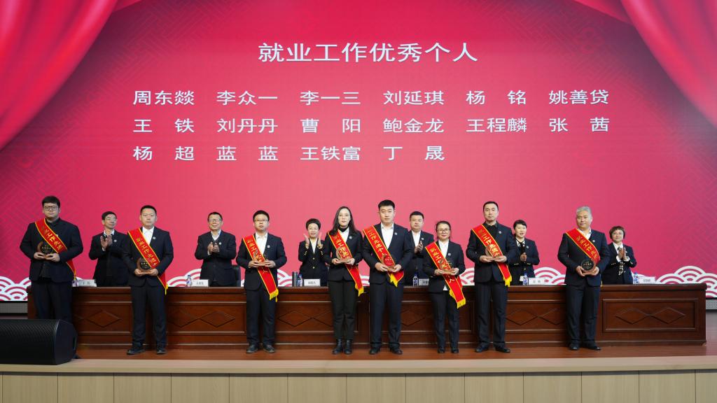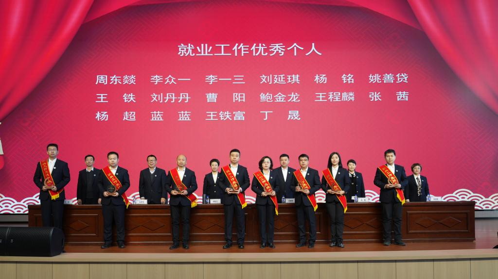 大会在庄严的国歌声中拉开帷幕。高楠、于钧、石洪发相继宣读了《2024届毕业生就业工作先进集体和优秀个人》《年度“四件大事”工作优秀个人》《“亮绩赛马”优秀干部》的表彰决定。