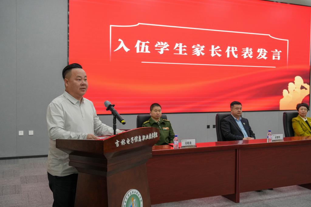 郝梓越的父亲代表新兵家属发言,他诚挚的感谢校方对孩子们这些年的悉心培养和教导。他希望新兵们牢记父母、亲友的殷切期望,苦练本领,在部队里千锤百炼,成为对社会、对国家的有用之才。
