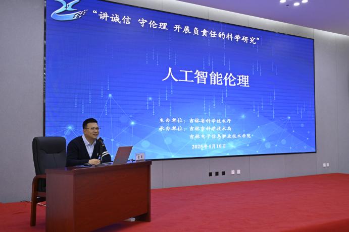 4月10日下午,由吉林省科学技术厅主办,我校承办的“讲诚信 守伦理 开展负责任的科学研究”系列宣讲活动首场科技伦理培训在新山校区图书馆一楼报告厅举行。长春大学计算机科学技术学院网络安全学院院长赵剑应邀来校作专题宣讲,校长曾繁明主持培训会。 培训会上,赵剑教授以《人工智能伦理》为题,从伦理、人工智能、人工智能伦理及应对策略三个方面系统讲授了人工智能领域科技伦理的相关政策规定、具体要求以及面临的挑战,助力师生养成严守学术诚信、遵循科研伦理、遵守学术规范的良好风气,为我们做好相关工作提供了理论保障和实践价值。 本次培训是2025年在吉林市举办的首场科技伦理培训,也是学校加强科研诚信建设,常态化开展师德师风教育,提升教师在科研实践中的伦理决策能力,推进科研驱动技术创新工程、师德师风铸魂行动的举措之一。 吉林省科技厅监督评估与科研诚信处处长唐喆、监督评估与科研诚信处主任科员刘明明,吉林市科技局副局长袁春光、发展规划与科研诚信处处长孟祥丹出席活动,我校师生、部分驻吉高校和企业有关同志参加活动。 (供稿单位:科技开发处 初审:孙弢 复审:孟令飞 终审:汤海涛)